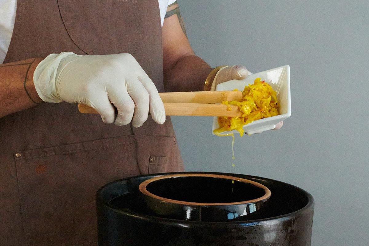 Die Kohlrabi-Weißkohl-Mischung überzeugt mit ihrer frischen Säure, einer feinen Schärfe durch Pfeffer und Chili sowie einer aromatischen Note von Kurkuma, Senfsaat und Kümmel.